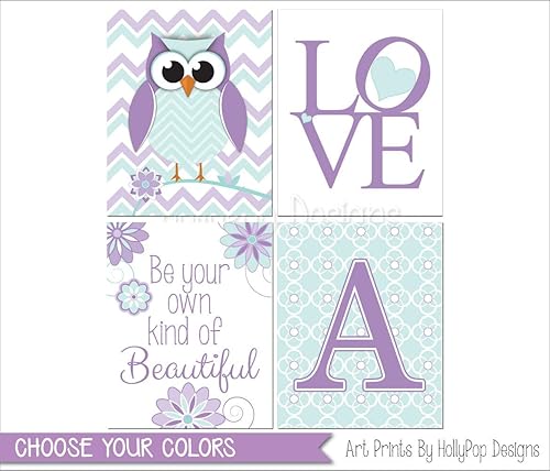 Owl Nursery Decor Aqua And Purple Baby Girl Room Decor Owl Etsy