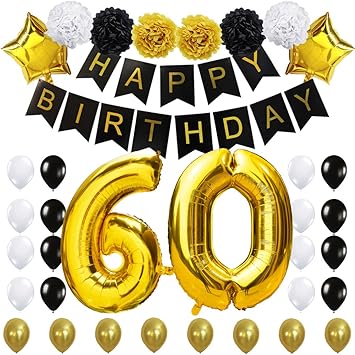 Lincaier 32 Pulgadas 62 Cm 60th Cumpleanos Oro Globos Feliz 60