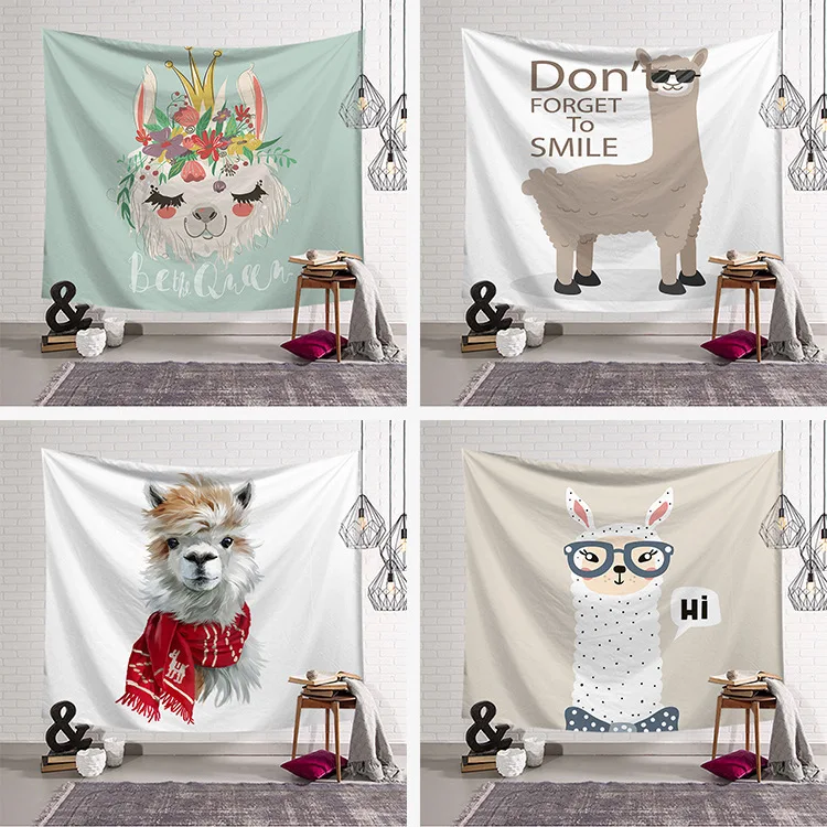 Hot Selling Digital Printing Cartoon Alpaca Tapestries Wall Carpet
