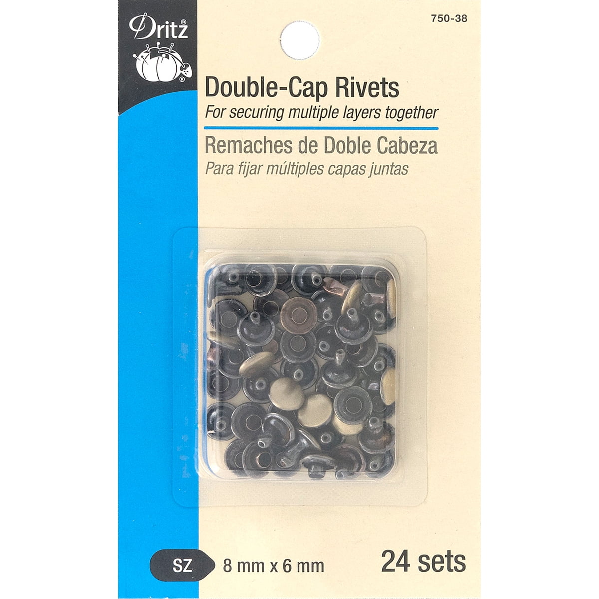 Dritz Double Cap Rivets 8mm Cap X 6mm Post 24 Pkg Brushed Antique