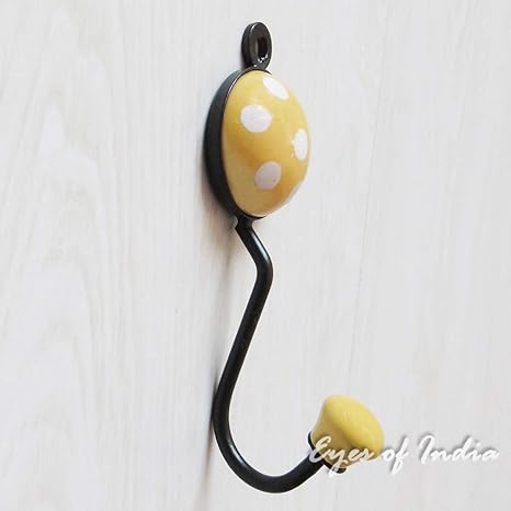 Eyes Of India 5 Yellow Ceramic Wall Hooks Hangers Coat Key Rack