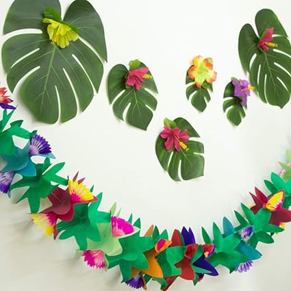 Ourwarm Hawaiian Luau Tropical Palm Leaves Hawaiian Leis Flower