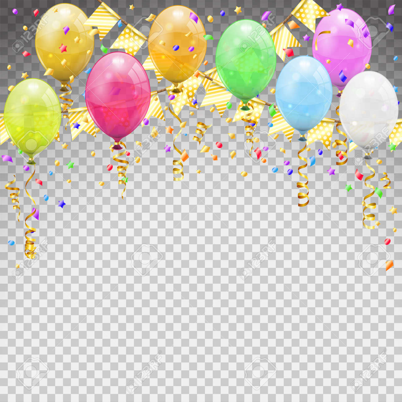 Birthday With Balloons Golden Streamer Twisted Ribbons Flags