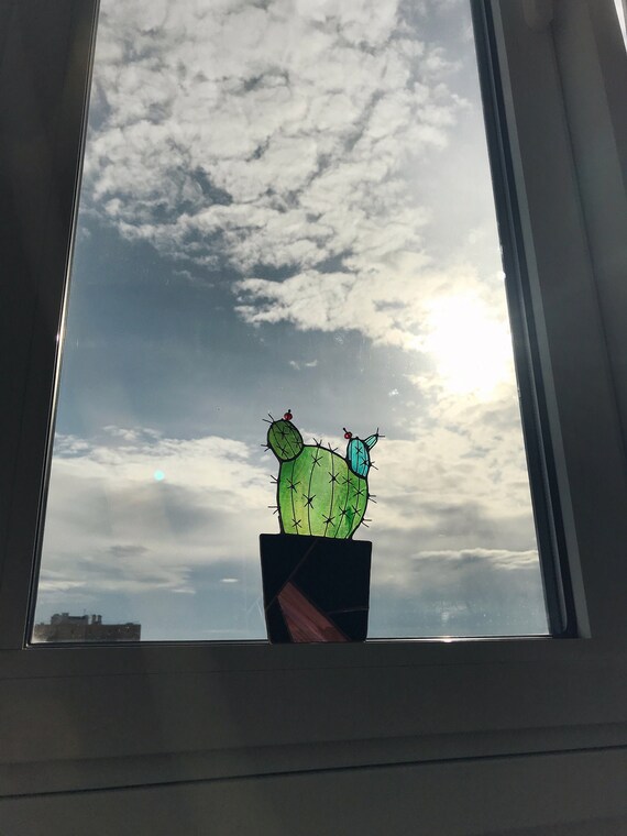 Green Stain Glass Flowerpot Cactus Tiffany Home Decor Plant Etsy