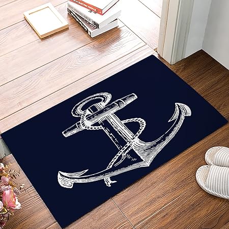 Amazon Com White Nautical Anchor Navy Blue Door Mats Cover Non
