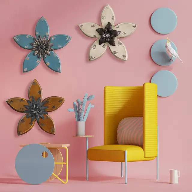 Limeide large metal flower outdoor wall decor garden hanging decoration iron floral wall art for balcony patio porch bedroom bedroom living room office 142 inches blue 48 out of 5 stars 15. Metal flower wall decor set perfect in the kitchen living room bathroombedroom or gardenalso can use for wedding decor. Galvanized finishlight weight sliver metal wall artplaque measures large17x 3.