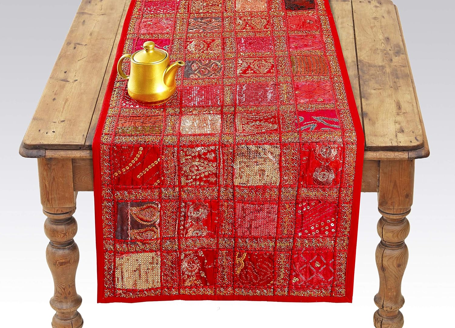 Buy Red Indian Table Runner Embroidered Sequin Cotton Boho