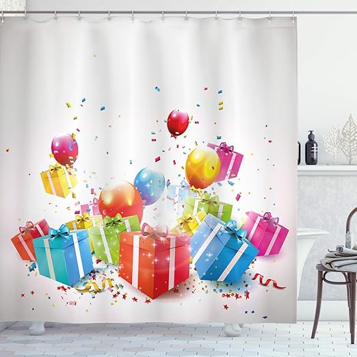 Amazon Com Ambesonne Birthday Decorations Shower Curtain
