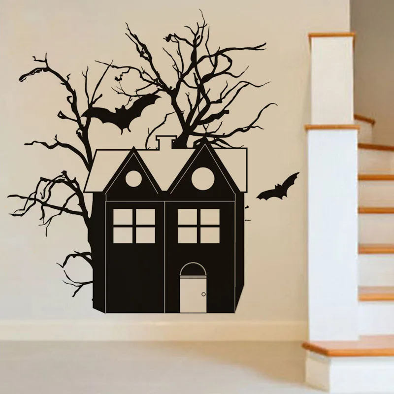 Halloween Haunted House Bats Tree Branch Wall Stickers Vinyl