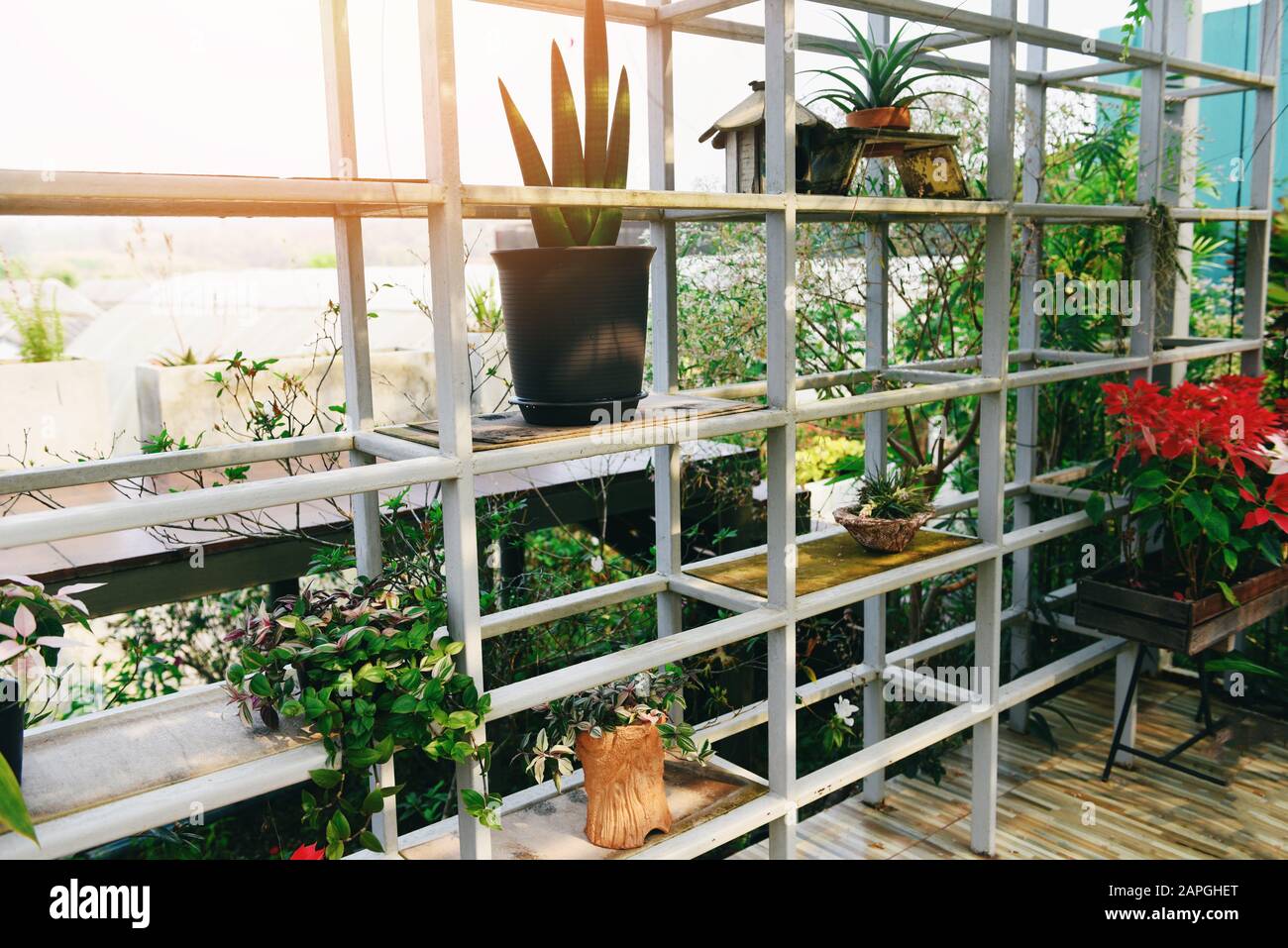 Two Wooden Shelves With Various Houseplants Decorative Indoor