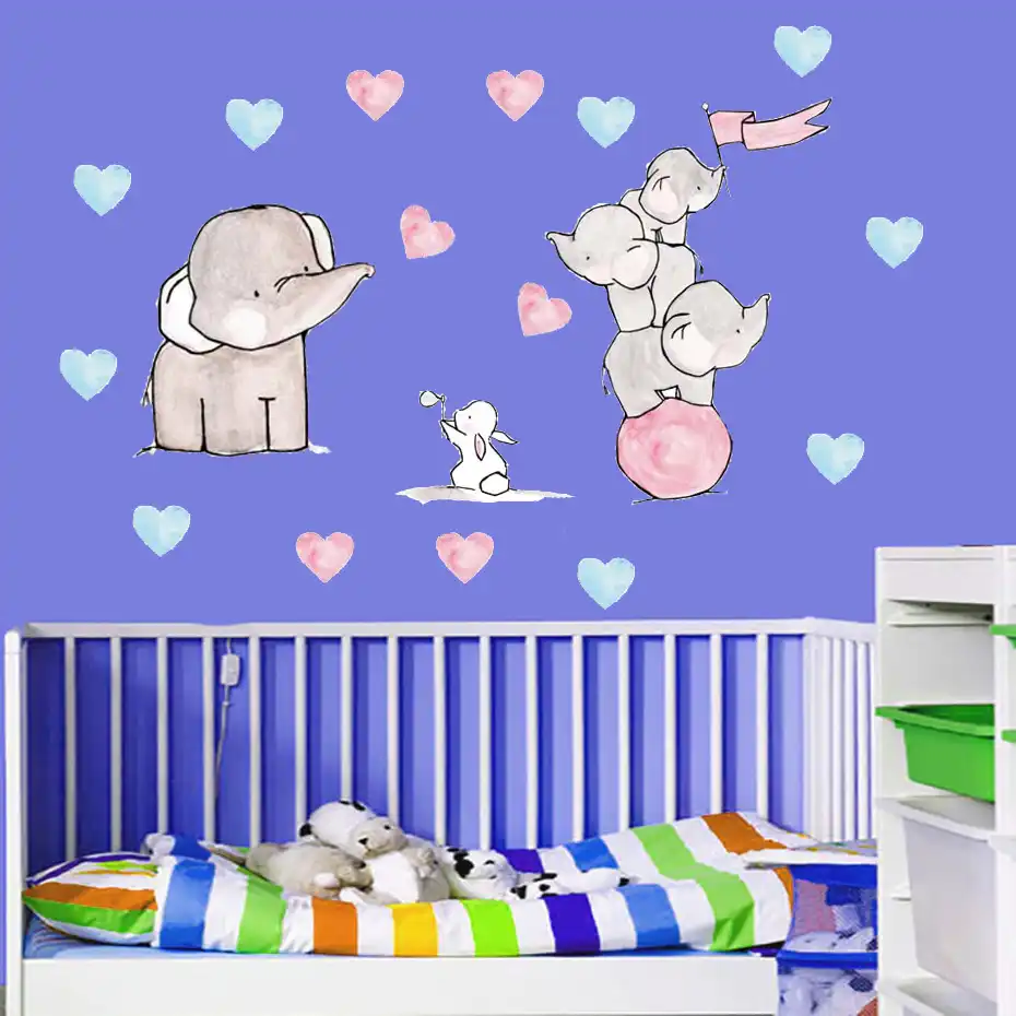 Cute Elephant Hearts Family Wall Decals For Baby Room Decor Kids