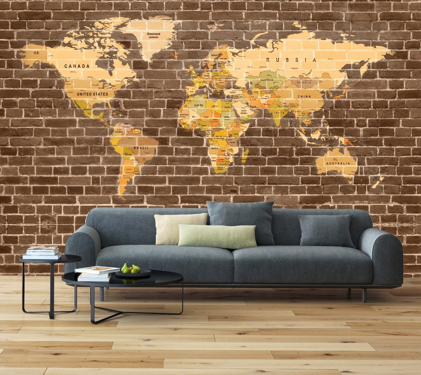 World Map Wall Mural Modern Wall Paper Vintage Wall Decor