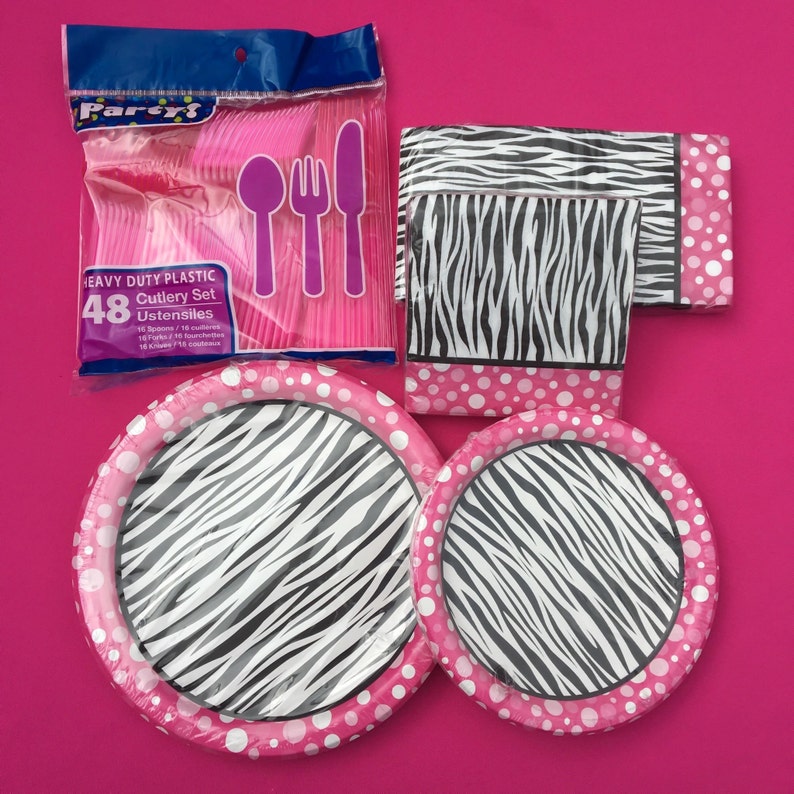 Pink Zebra And Dots Party Decorations Zebra Themed Plates Etsy
